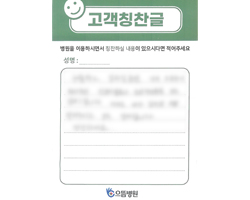 이성만 원장님께 감사드립니다.시작 전부터 끝까지 세심하게 신경 써주시고, 과정 중에도 환자에게 더 좋은 방향을 고민하시며 집도해주시고,안전하게 마무리 해주셔서 진심으로 감사드립니다. 또한 입원기간동안 늘 따뜻한 관심과 배려로 살펴주신 서은주 간호과장님께도 깊은 감사의 말씀을 드립니다. 의료진 여러분의 정성과 노고 덕분에 ..
