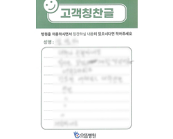 병원장님, 간호 과장님 치료 잘 받고 갑니다. 특히 병원 직원분들 너무 친절하였습니다. 음식도 잘 나왔습니다. 대한민국 최고의 병원 되십시오.