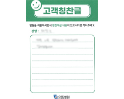 환자분의 고객감동편지 입니다.