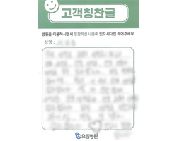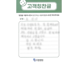 이★옥님의 고객감동편지 입니다. 식사도 제대로 잘 나오고, 모든 분들이 너무너무 친절하셔서 너무 고마웠습니다. 으뜸병원 꼭 추천하겠습니다. 2026/02/05 김★이님의 고객감동편지 입니다. 수간호사 선생님, 간호사 선생님, 조무사 선생님. 따뜻하게 보듬어 주시고, 너무너무 친절하게 해주셔서 감사드립니다. 2026/02/05 박★흠님의 고객감동편지 입니다. 직원 전체가 너무 잘해주어서 편히 쉬다 가는 것 같습니다. 감사합니다. 2026/02/05 김★오님의 고객감동편지 입니다. 모든 직원들께서 정말 친절하고 편안하게 해주셔서 고맙습니다. 2026/02/02 배★빈님의 고객감동편지 입니다. 여기 계신 간병인, 간호사분들이 너무 친절하시고 혈압 체크, 잘 때 불편한 점은 없었는지, 약을 챙겨주시는 등등 섬세한 것 하나하나까지 잘 챙겨주셔서 입원해 있는 일주일 동안 정말 편하게 잘 있다 .. 2026/01/29 김★기님의 고객감동편지 입니다. 그동안 많이 발전되고 좋은 서비스에 또 한 번 감동받고 퇴원합니다. 모든 면에서 다 만족하고 특히 음식이 전보다 향상되었습니다. 여기서 많은 환자분들과 간호사, 조무사님들과 정이 많이 들었습니다. .. 2026/01/29 구★본님의 고객감동편지 입니다. 모든 직원들이 친절하고 잘 관리해 주셔서 편히 퇴원합니다. 감사합니다. 2026/01/29 주★녀님의 고객감동편지 입니다. 간호 선생님들도 참 잘해주셔서 편안하게 잘 있다 갑니다. 모든 선생님들 고맙고 친절하게 해주셔서 고맙습니다. 감사합니다. 건강하세요. 행복하세요. 2026/01/29 이★길님의 고객감동편지 입니다. 병원의 모든 분들이 친절하고 병실 및 모든 공간이 청결하였습니다. 2026/01/26 허★석님의 고객감동편지 입니다. 1. 원장님이 직접 시행하여 만족하며, 결과도 좋습니다. 2. 7층 간호를 담당하는 간호사분들과 간병을 담당하는 분들의 친절함에 감사드립니다. 3. 식당의 메뉴 또한 정갈하고 정성이 듬뿍 담겨 입원.. 2026/01/26 박★숙님의 고객감동편지 입니다. 입원해 있는 동안 간호사 선생님들께서 너무 친절하고 상냥하게 잘해주셔서 감사드립니다. 간호조무사 선생님들 너무 감사드릴게요. 2026/01/26 이★자님의 고객감동편지 입니다. 간호사님, 조무사님 친절한 덕분에 잘 회복해서 퇴원합니다. 넘 친절한 간호사님, 조무사님 감사합니다. 2026/01/26 나★숙님의 고객감동편지 입니다. 안녕하세요 저는 으뜸병원에 재활하려고 왔습니다. 그런데 제 생일 아시고 케이크와 편지와 사진을 찍어주셨습니다. 저는 너무 고맙고 감사했습니다. 또 선생님도 친절하시고 간호사 선생님도 친절하셔서 감동.. 2026/01/26 김★호님의 고객감동편지 입니다. 으뜸병원에 입원할 수 있어서 아주 다행이고, 행운이라 생각합니다. 1. 김윤기 원장 선생님 : 존경하고 존중합니다. 늘 미소로 맞이하여 주시고 치유를 진심으로 걱정해 주시는 마음은 늘 느끼고 있었습.. 2026/01/22 이★순님의 고객감동편지 입니다. 우리 선생님 김윤기 선생님(최고), 간호 과장님, 간호 선생님, 간호조무사 선생님 모두 감사합니다. 특히, 이승은 간호 선생님 감사합니다. 또 저 관장할 때 고생한 간호 선생님과 간호조무사 선생님 .. 2026/01/22 [1] [2] [3] [4] [5] [6] [7] [8] [9] [10] ▶