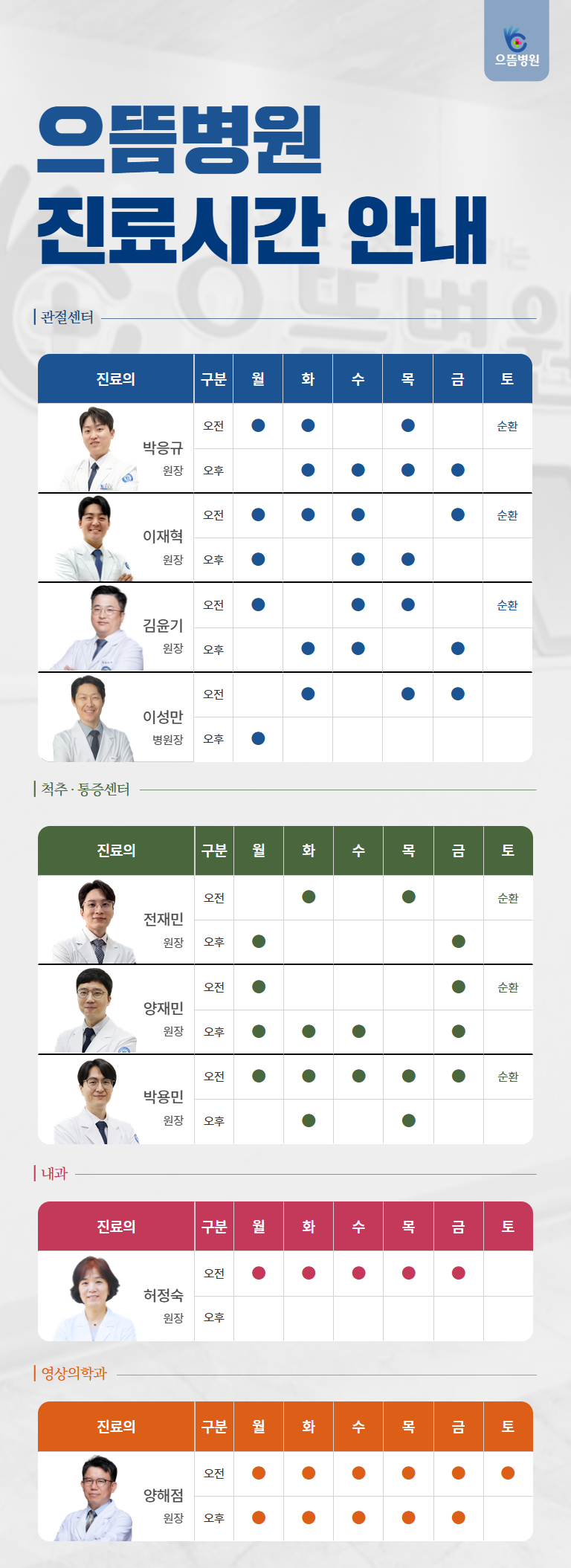 진료시간  |  진료절차  |  입퇴원안내