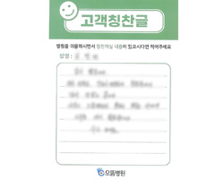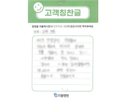 처음 진료 때부터 느낀점은 직원 모두가 친절하고 세심한 부분까지 알려주어서 기분이 좋았다. 특히 입원하고 7층 간호사선생님들이나 같이 근무하시는 분들도 너무나 세심한 부분까지 가족처럼 챙겨주시고 보살펴 주어서 빨리 건강을 회복한 것 같아 추천해주고 싶은 병원인 것 같다.