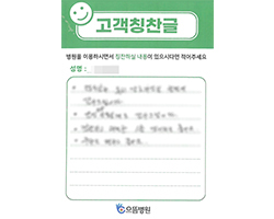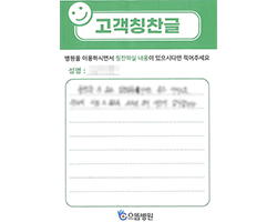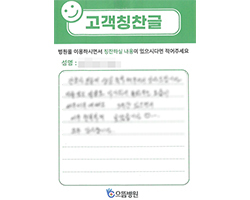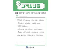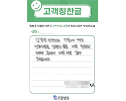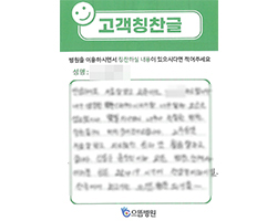불편할 수 있는 입원생활이지만 좋은 서비스로 편하게 지낼 수 있도록 도와준 것에 대단히 감사합니다.